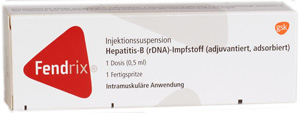 Titerkontrolle und gegebenenfalls Auffrischung bei Personen mit hohem Hepatitis-B-Expositionsrisiko alle 10 Jahre | ab 16 Jahre | i.m. | Inj. Susp. in Fsp. o. Kan. | 1er: 08926429 10er: 08926435 | Im Kühlschrank lagern (2 °C – 8 °C) Kühlkettenpflichtig: Nein | GSK Vaccines GmbH |