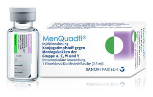 Auffrischung mit MenQuadfi möglich bei Personen, die grundimmunisiert sind mit Meningokokken-Impfstoff derselben Serogruppe. | ab 12 Monate | i.m. in den Oberarm oder Oberschenkel | Inj. Lsg. in Dfl. | 1er: 02912515 10er: 18771525 | Im Kühlschrank lagern (2 °C – 8 °C) Kühlkettenpflichtig: Ja | Sanofi-Aventis |