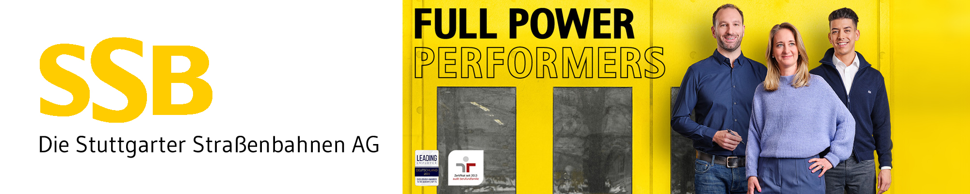 Die SSB AG wurde im Rahmen des Audits für „Beruf und Familie“ bereits im Jahr 2013 erstmals als familienfreundlicher Arbeitgeber zertifiziert. Für uns ist die berufliche Gleichstellung von Mitarbeitenden von Frauen, Männern und Menschen nichtbinärer Geschlechtsidentität ein Anliegen, das wir auch in unserer Personalauswahl leben. Schwerbehinderte Menschen werden bei ihrer Bewerbung nach Maßgabe des SGB IX bei gleicher Eignung besonders berücksichtigt. Willkommen sind Bewerbungen von Menschen unabhängig von deren kultureller und sozialer Herkunft, Alter, Religion, Weltanschauung oder sexueller Identität. Die SSB AG unterstützt die Ziele des Nationalen Integrationsplans und begrüßt Bewerbungen von Menschen mit Migrationshintergrund.
